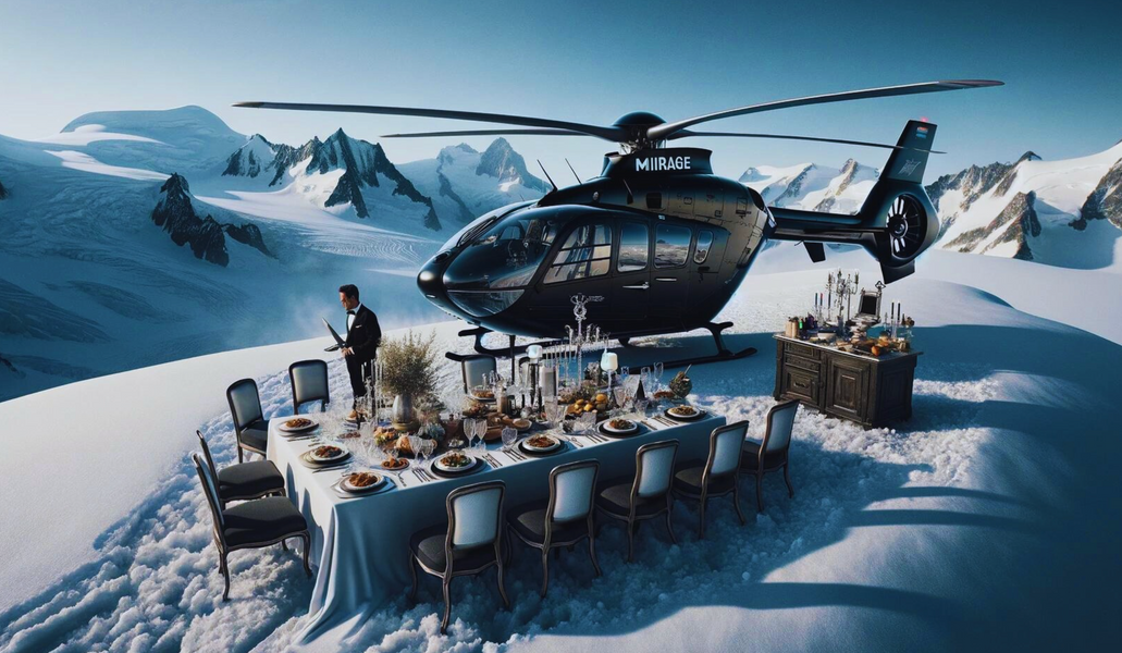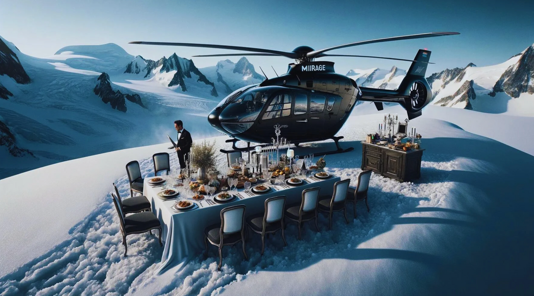 Welcome to MIIRAGE, from the mind of Max Vaillard, offering the most exclusive and innovative dining experiences. In our debut season, we are partnering with Halpes Helicopter to provide unparalleled culinary adventures.